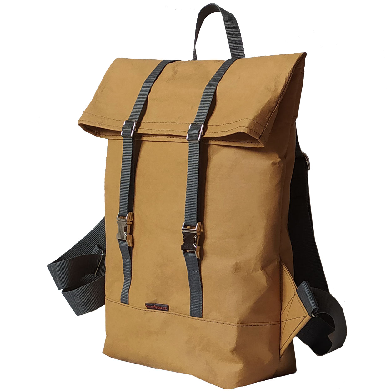 Batoh GUNNAR 01 z pratelného papíru (veganská kůže, SnapPap, WashPaper, Kraft Tex, ...) odstínu bronz s uzavíráním na kovové trojzubce.