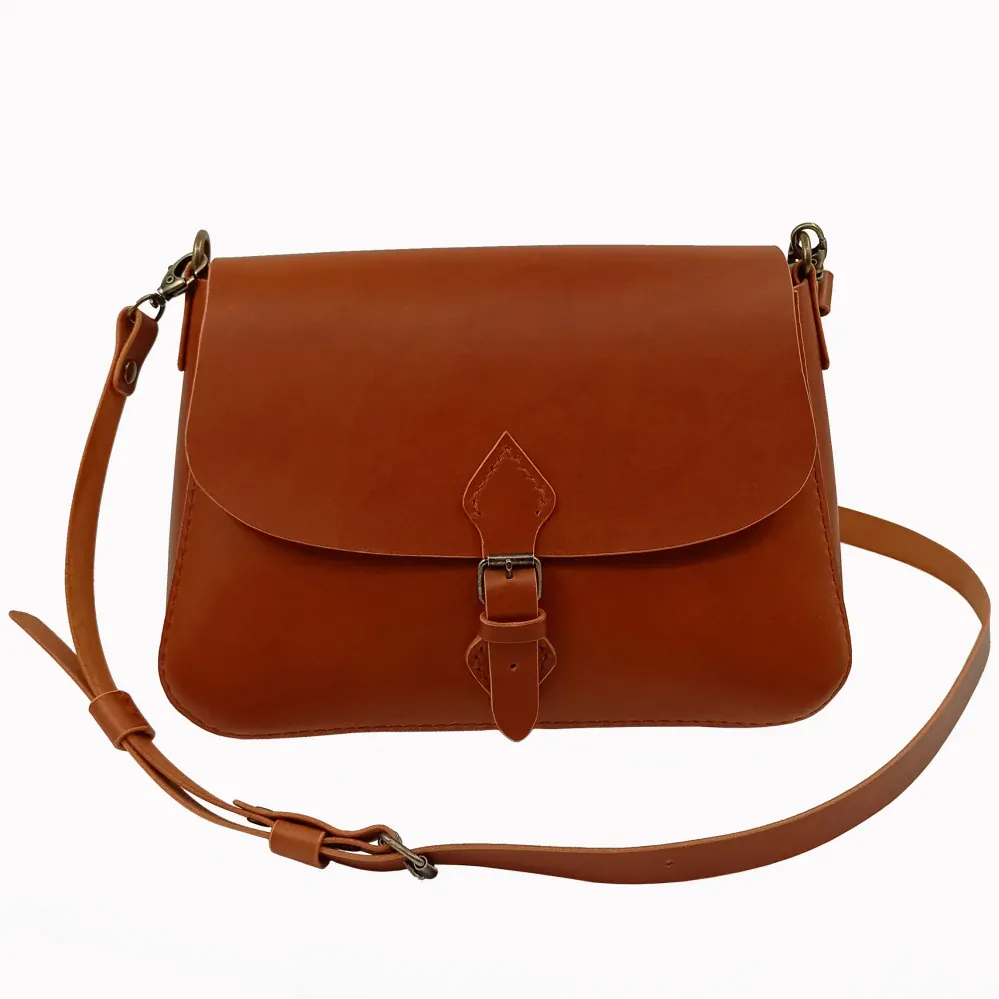 Kožená kabelka Kiara L střední velikosti, světle hnědé barvy, je vyrobena z prémiové třísločiněné hovězí usně z italské koželužny.