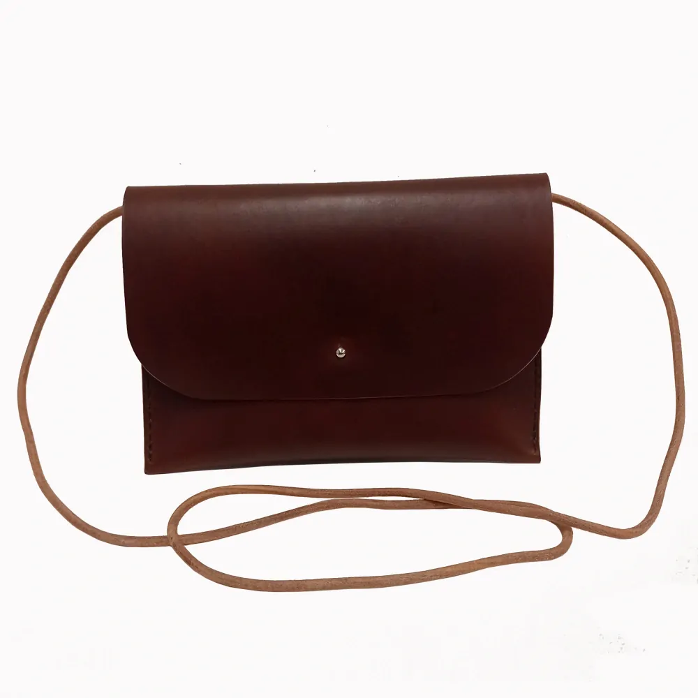 Originální psaníčko s přírodní koženou kulatou šňůrou a zapínáním na stříbrný sedlářský nýt. Lze nosit crossbody nebo přes rameno.