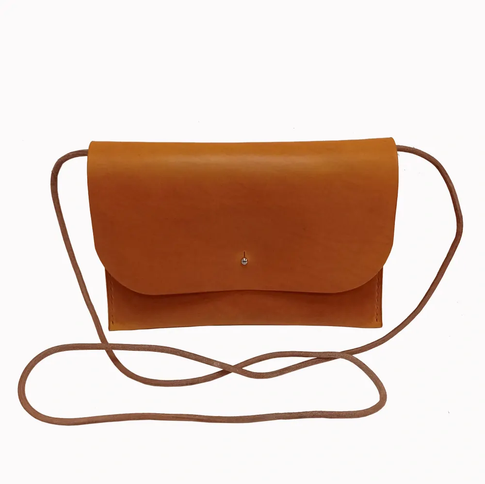 Originální psaníčko s přírodní koženou kulatou šňůrou a zapínáním na stříbrný sedlářský nýt. Lze nosit crossbody nebo přes rameno.