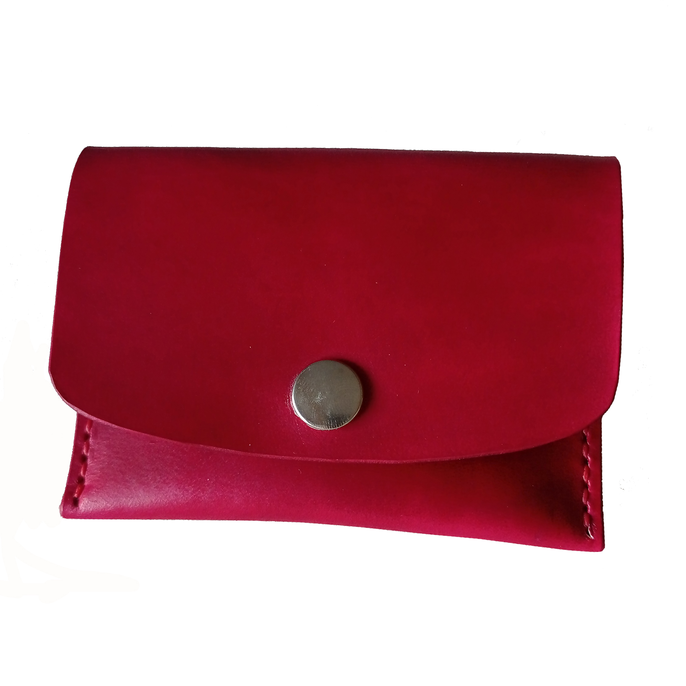 Malá kožená peněženka v červené barvě s uzavíráním na druk.