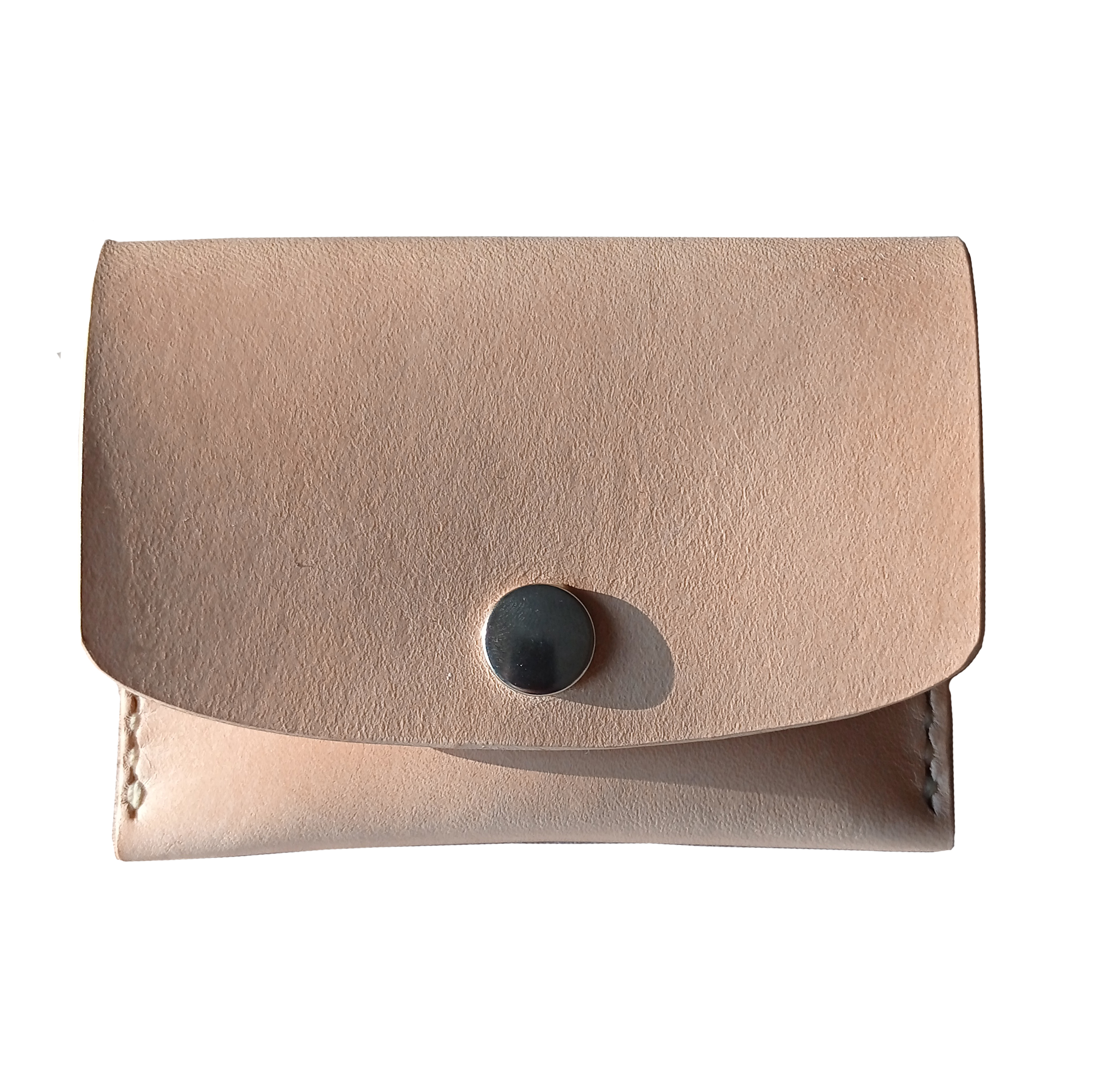 Malá kožená peněženka v přírodní barvě s uzavíráním na druk.